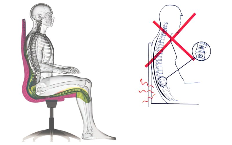 "Phần lồi phía trước mặt ghế" giữ cho xương chậu thẳng đứng, không bị trượt đổ nghiêng xương chậu gây ra biến dạng cột sống, tăng sức ép trên đĩa đệm gây thoát vị đĩa đệm.
